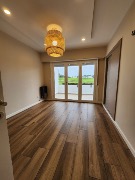 Dormitorio con pisos porcelanatos, con placard, sommier y respaldo, mesas de luz, entradas USB, cortinas.