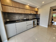 Amplia cocina separada con cortinas Roller, equipada con heladera con frezzer y lavarropas.